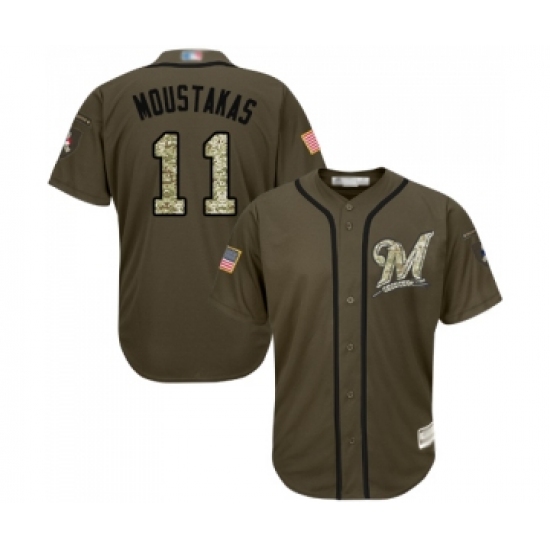 Men's Milwaukee Brewers #11 Mike Moustakas Authentic Green Salute to Service Baseball Jersey