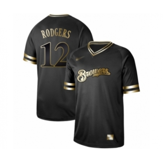 >Men's Milwaukee Brewers #12 Aaron Rodgers Authentic Black Gold Fashion Baseball Jersey