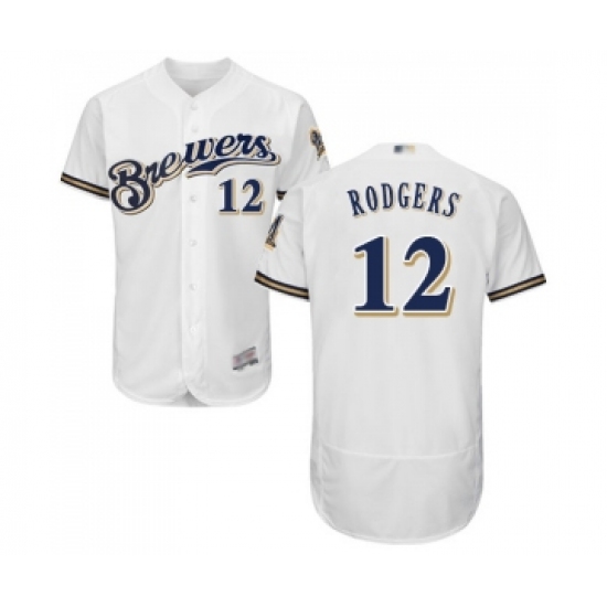 Men's Milwaukee Brewers #12 Aaron Rodgers White Alternate Flex Base Authentic Collection Baseball Jersey