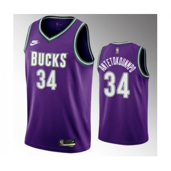 Men's Milwaukee Bucks #34 Giannis Antetokounmpo 2022-23 Purple Classic Edition Swingman Stitched Basketball Jersey