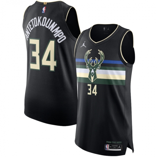 >Men's Milwaukee Bucks #34 Giannis Antetokounmpo Jordan Brand Black 2020-21 Authentic Swingman Jersey