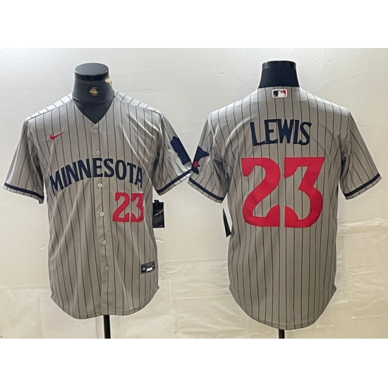 >Men's Minnesota Twins #23 Royce Lewis Number 2023 Grey Home Team Cool Base Stitched Jerseys