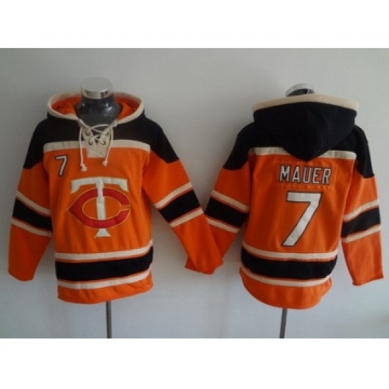 Men's Minnesota Twins #7 Joe Mauer Orange MLB Baseball Hoodie
