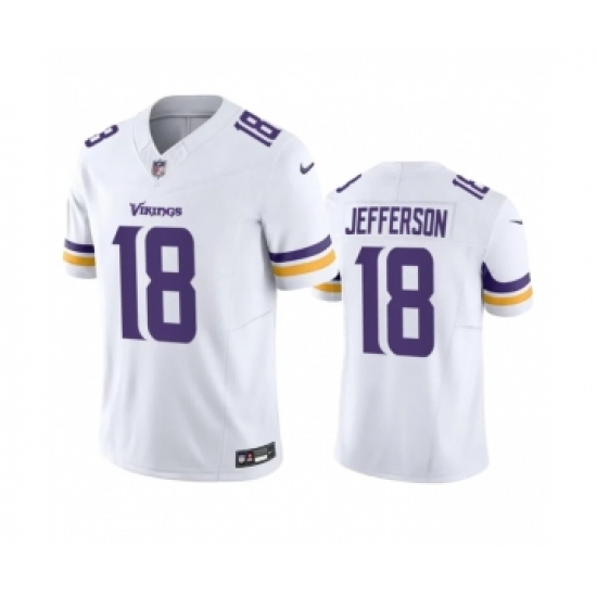 >Men's Minnesota Vikings #18 Justin Jefferson White 2023 F.U.S.E. Vapor Untouchable Stitched Jersey