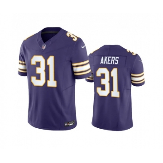 >Men's Minnesota Vikings #31 Cam Akers Purple 2023 F.U.S.E. Vapor Throwback Limited Stitched Jersey