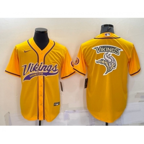 Men's Minnesota Vikings Yellow Team Big Logo With Patch Cool Base Stitched Baseball Jersey