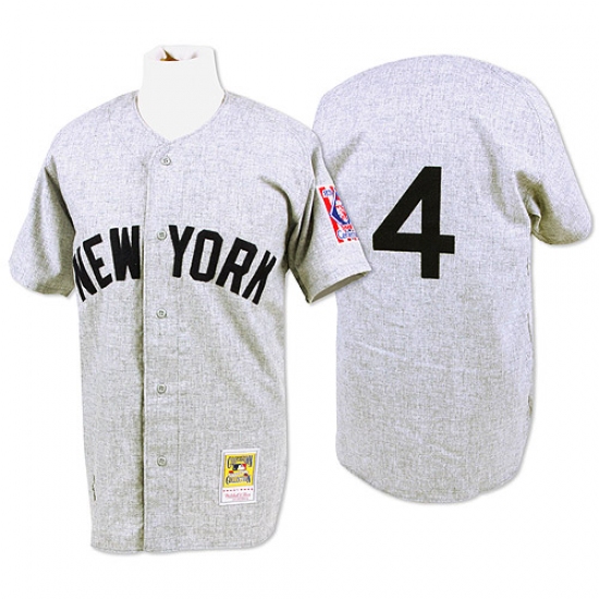 Men's Mitchell and Ness 1939 New York Yankees #4 Lou Gehrig Authentic Grey Throwback MLB Jersey
