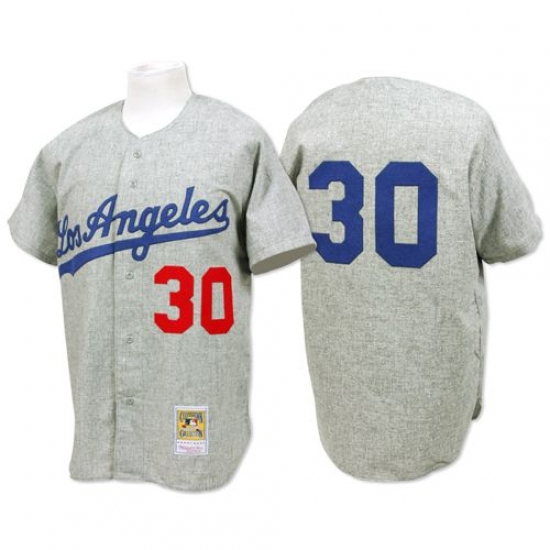 Men's Mitchell and Ness 1963 Los Angeles Dodgers #30 Maury Wills Replica Grey Throwback MLB Jersey