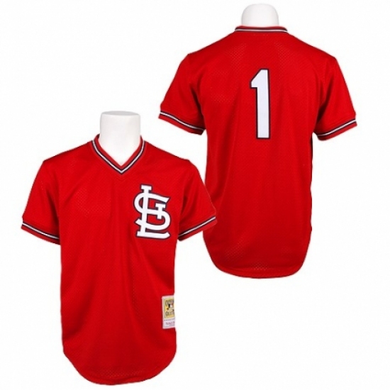 Men's Mitchell and Ness 1985 St. Louis Cardinals #1 Ozzie Smith Replica Red Throwback MLB Jersey