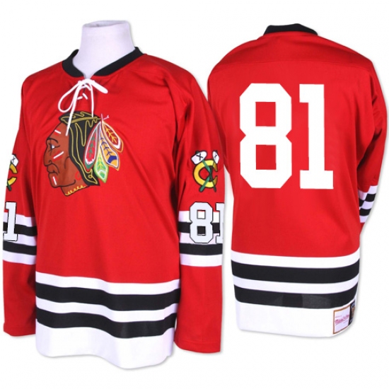 Home>NHL>Chicago Blackhawks>Marian Hossa>Men's Mitchell and Ness Chicago Blackhawks #81 Marian Hossa Premier Red 1960-61 Throwback NHL Jersey