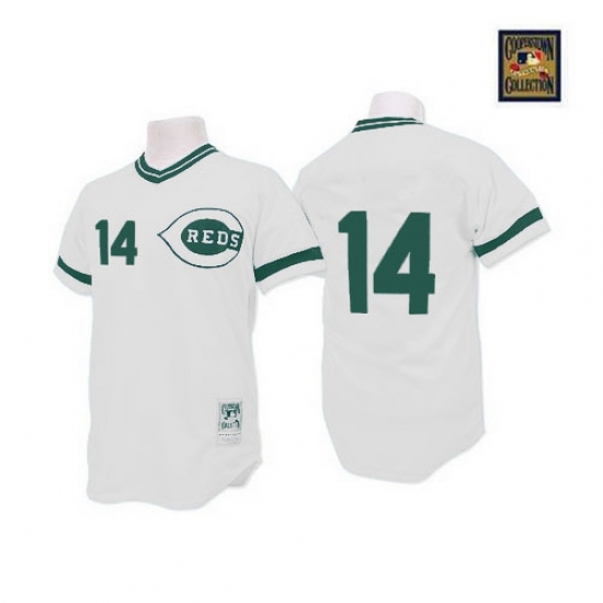 Men's Mitchell and Ness Cincinnati Reds #14 Pete Rose Authentic White(Green Patch) Throwback MLB Jersey