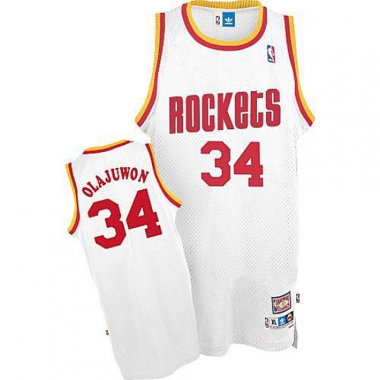 Men's Mitchell and Ness Houston Rockets #34 Hakeem Olajuwon Authentic White Throwback NBA Jersey