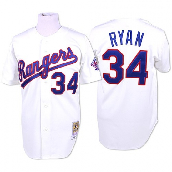 Men's Mitchell and Ness Texas Rangers #34 Nolan Ryan Replica White Throwback MLB Jersey