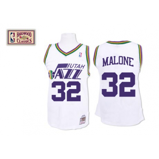 Men's Mitchell and Ness Utah Jazz #32 Karl Malone Swingman White Throwback NBA Jersey