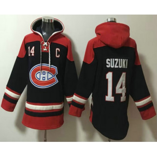 >Men's Montreal Canadiens #14 Nick Suzuki Navy Blue Ageless Must Have Lace Up Pullover Hoodie