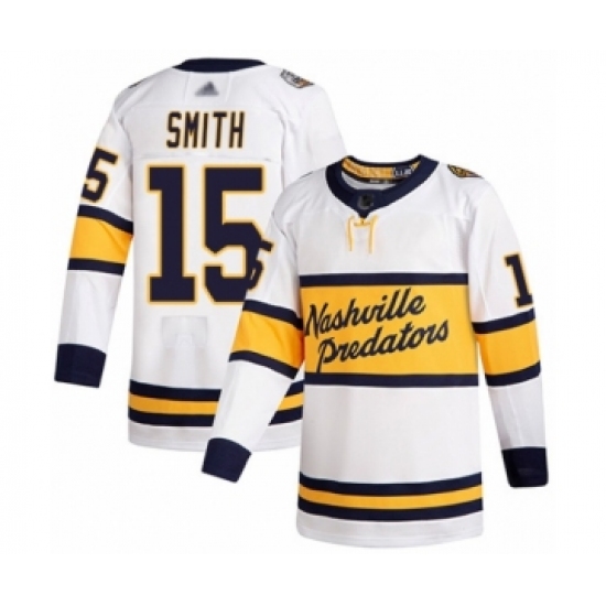 >Men's Nashville Predators #15 Craig Smith Authentic White 2020 Winter Classic Hockey Jersey
