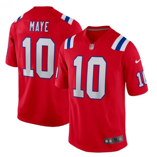 >Mens New England Patriots #10 Drake Maye Nike Red Alternate Vapor Limited Jersey
