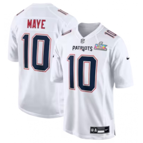 Men's New England Patriots #10 Drake Maye White Nike Super Bowl LX Tundra Fashion Game Jersey