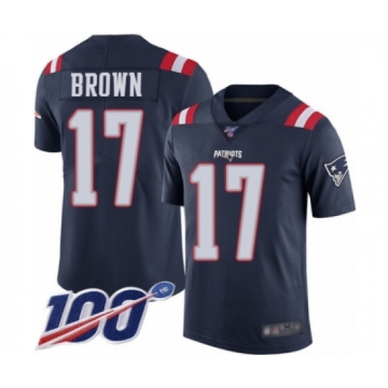 >Men's New England Patriots #17 Antonio Brown Limited Navy Blue Rush Vapor Untouchable 100th Season Football Jersey