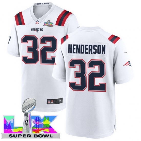 >Men's New England Patriots #32 TreVeyon Henderson White 2025 2026 Super Bowl LX F U S E Stitched Jersey