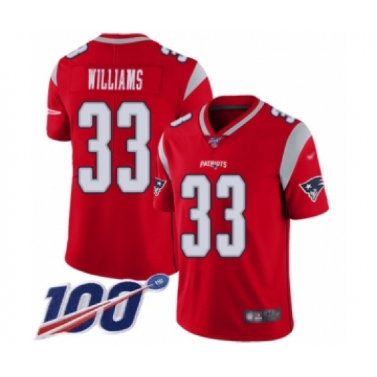 >Men's New England Patriots #33 Joejuan Williams Limited Red Inverted Legend 100th Season Football Jersey