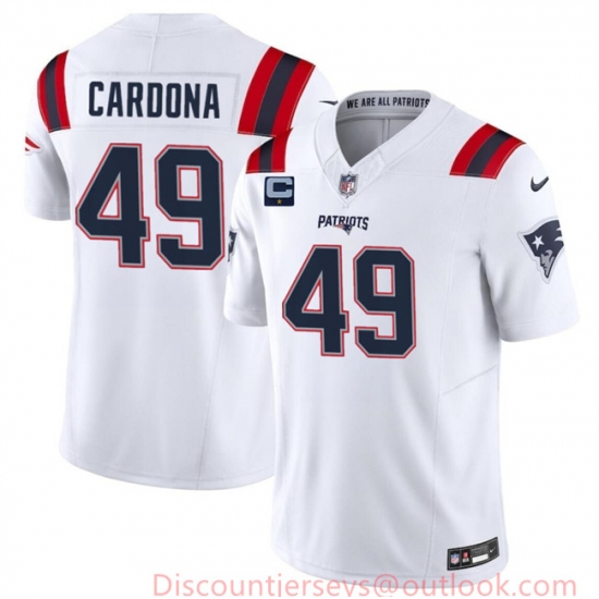 Men's New England Patriots #49 Joe Cardona White F.U.S.E. With 1-Star C Vapor Limited Stitched Football Jersey