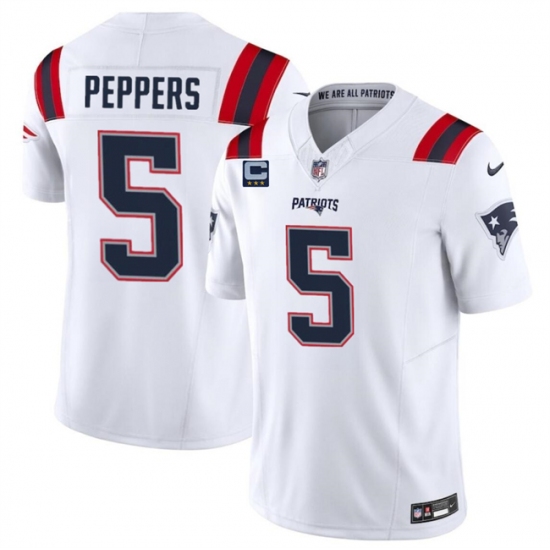 Men's New England Patriots #5 Jabrill Peppers White F.U.S.E. With 3-Star C Vapor Limited Stitched Football Jersey