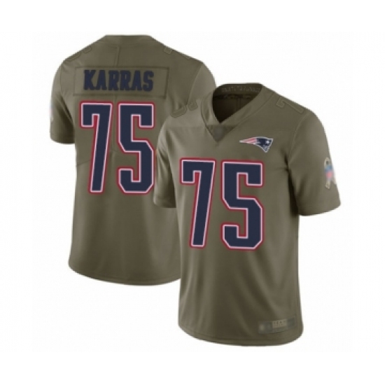 >Men's New England Patriots #75 Ted Karras Limited Olive 2017 Salute to Service Football Jersey