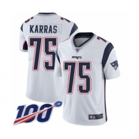 >Men's New England Patriots #75 Ted Karras White Vapor Untouchable Limited Player 100th Season Football Jersey