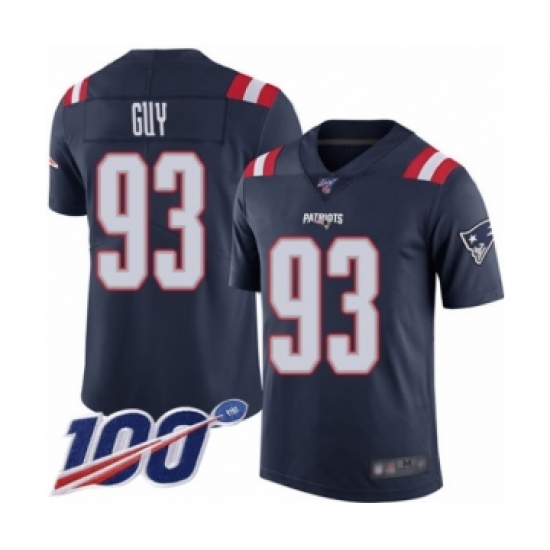 >Men's New England Patriots #93 Lawrence Guy Limited Navy Blue Rush Vapor Untouchable 100th Season Football Jersey