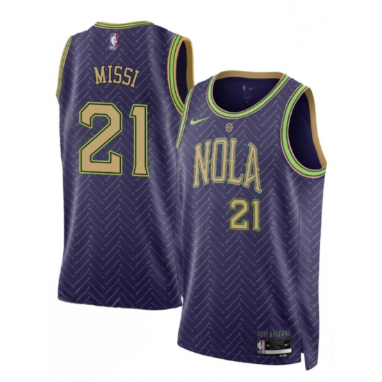 >Men's New Orleans Pelicans #21 Yves Missi Purple 2024-25 City Ediiton Stitched Basketball Jersey
