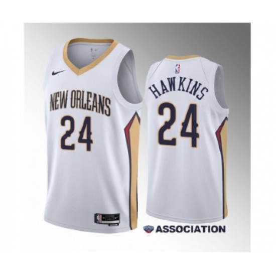 Men's New Orleans Pelicans #24 Jordan Hawkins White 2023 Draft Association Edition Stitched Basketball Jersey