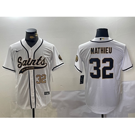 Men's New Orleans Saints #32 Tyrann Mathieu White Cool Base Stitched Baseball Jerseys