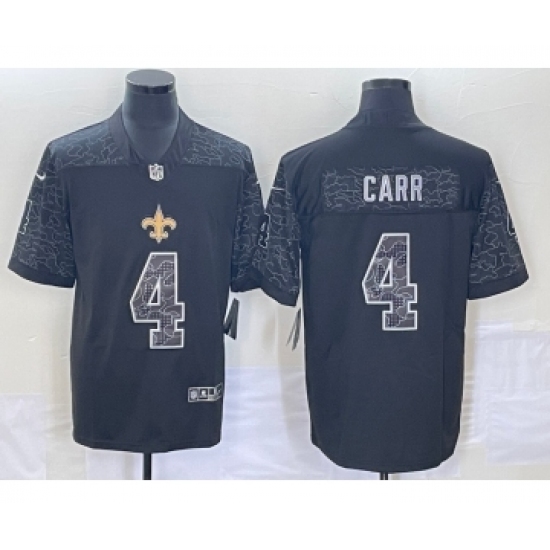 Men's New Orleans Saints #4 Derek Carr Black Reflective Limited Stitched Football Jersey