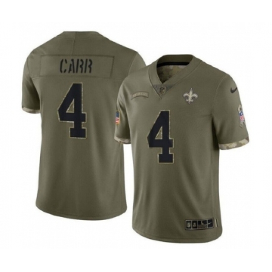 >Men's New Orleans Saints #4 Derek Carr Olive Salute To Service Limited Stitched Jersey