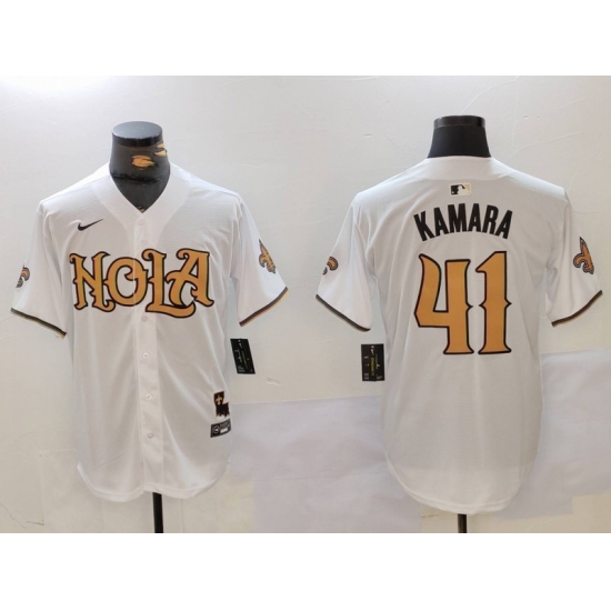 Men's New Orleans Saints #41 Alvin Kamara White Nola Baseball Jersey
