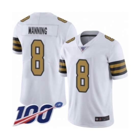 >Men's New Orleans Saints #8 Archie Manning Limited White Rush Vapor Untouchable 100th Season Football Jersey