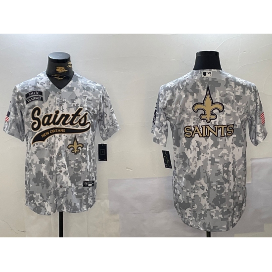 >Men's New Orleans Saints Team Big Logo 2024 Arctic Camo Salute To Service Stitched Baseball Jersey