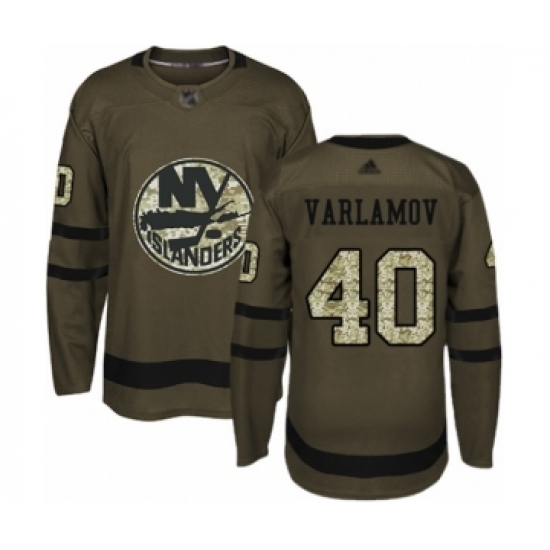 >Men's New York Islanders #40 Semyon Varlamov Authentic Green Salute to Service Hockey Jersey