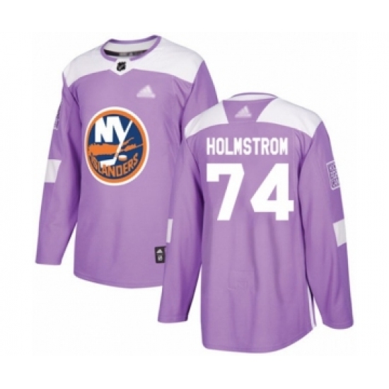 >Men's New York Islanders #74 Simon Holmstrom Authentic Purple Fights Cancer Practice Hockey Jersey