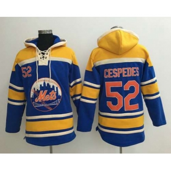 >Men's New York Mets #52 Yoenis Cespedes Blue With Orange Baseball MLB Hoodie