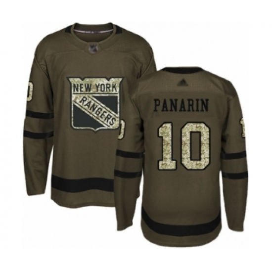 >Men's New York Rangers #10 Artemi Panarin Authentic Green Salute to Service Hockey Jersey