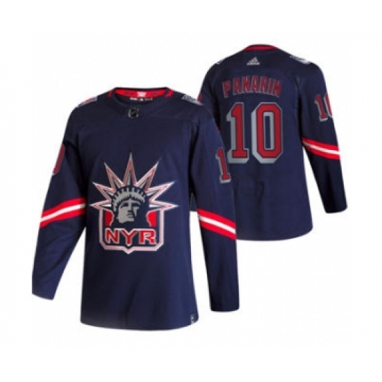 >Men's New York Rangers #10 Artemi Panarin Navy 2020-21 Reverse Retro Alternate Hockey Jersey
