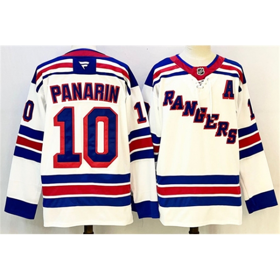 >Men's New York Rangers #10 Artemi Panarin White With A 2024-25 Away Stitched Jersey