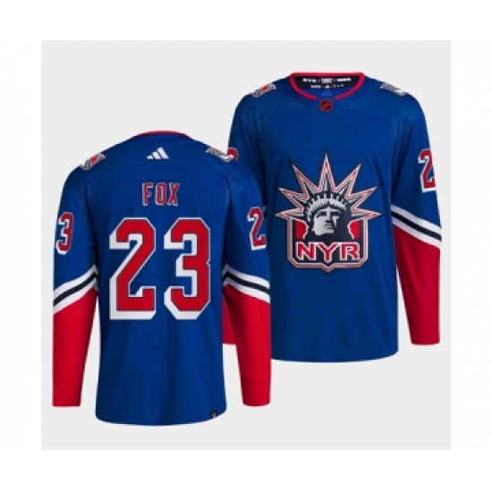 Men's New York Rangers #23 Adam Fox Blue 2022 Reverse Retro Stitched Jersey