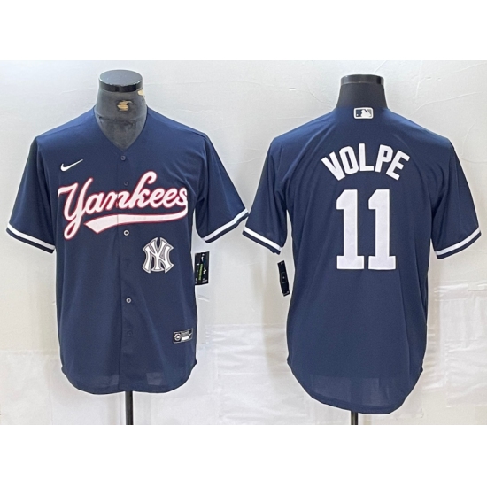 Men's New York Yankees #11 Anthony Volpe Navy Cool Base Stitched Baseball Jersey