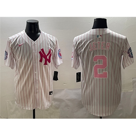 Men's New York Yankees #2 Derek Jeter Pink With Limited Stitched Baseball Jersey