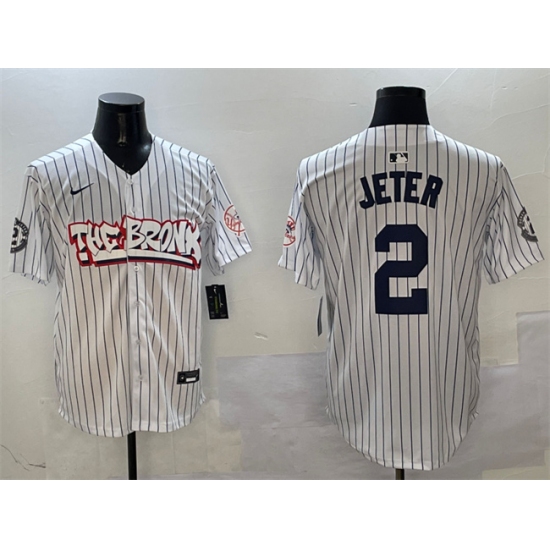 Men's New York Yankees #2 Derek Jeter White Bronx Graffiti Vapor Limited Stitched Baseball Jersey