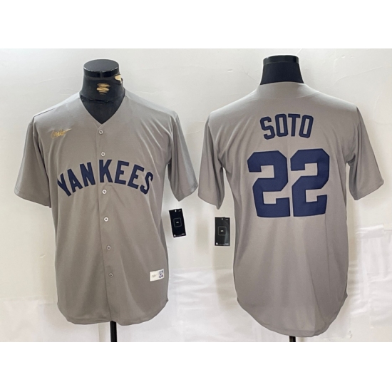 >Men's New York Yankees #22 Juan Soto Name Grey Stitched Nike Throwback Jersey