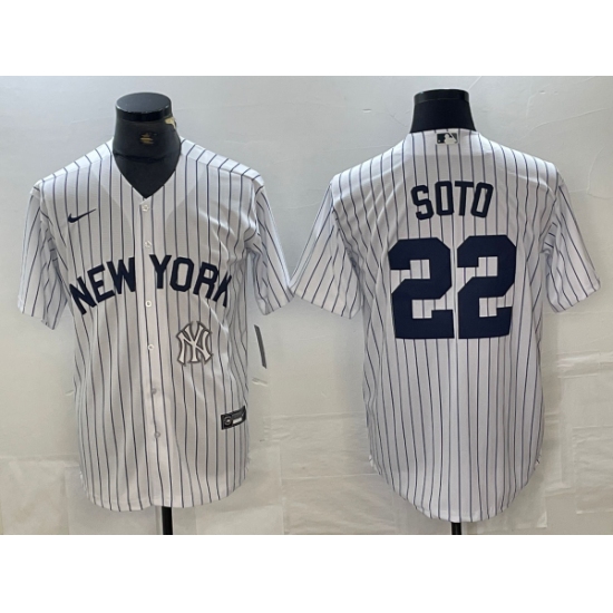 >Men's New York Yankees #22 Juan Soto White 2024 Cool Base Stitched Jersey